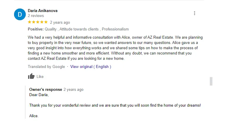 We organize viewings of chosen by you houses or flats on agreed days and hours. We value your time and plan the routes in the way which is the most convenient for you. If you can’t attend the viewings, we hold them using video and by sending you photos and video by Whatsapp
