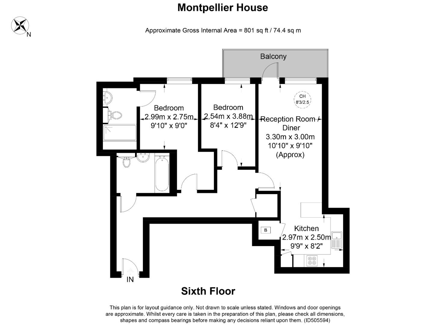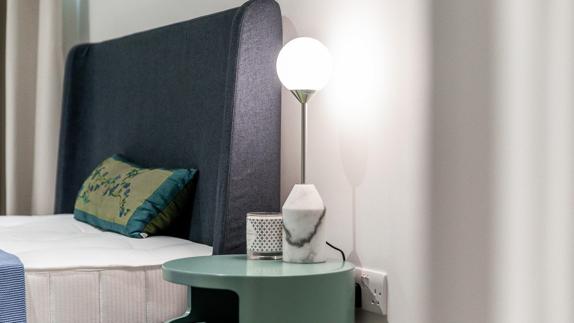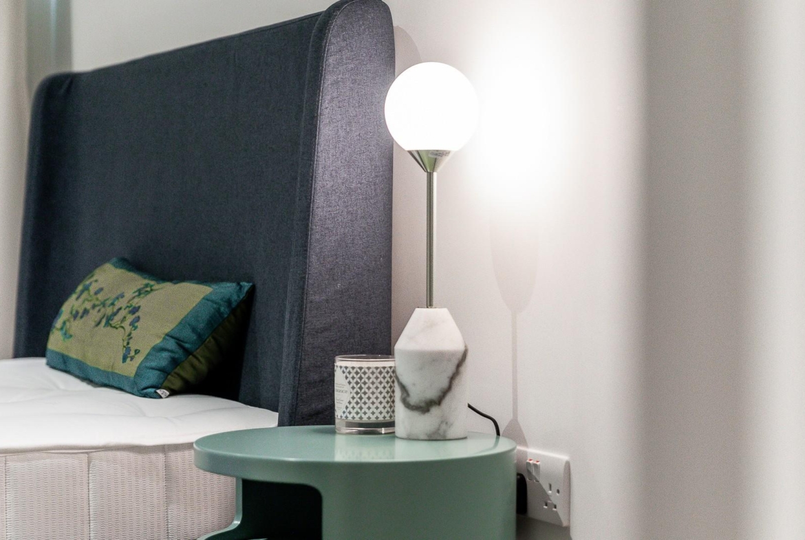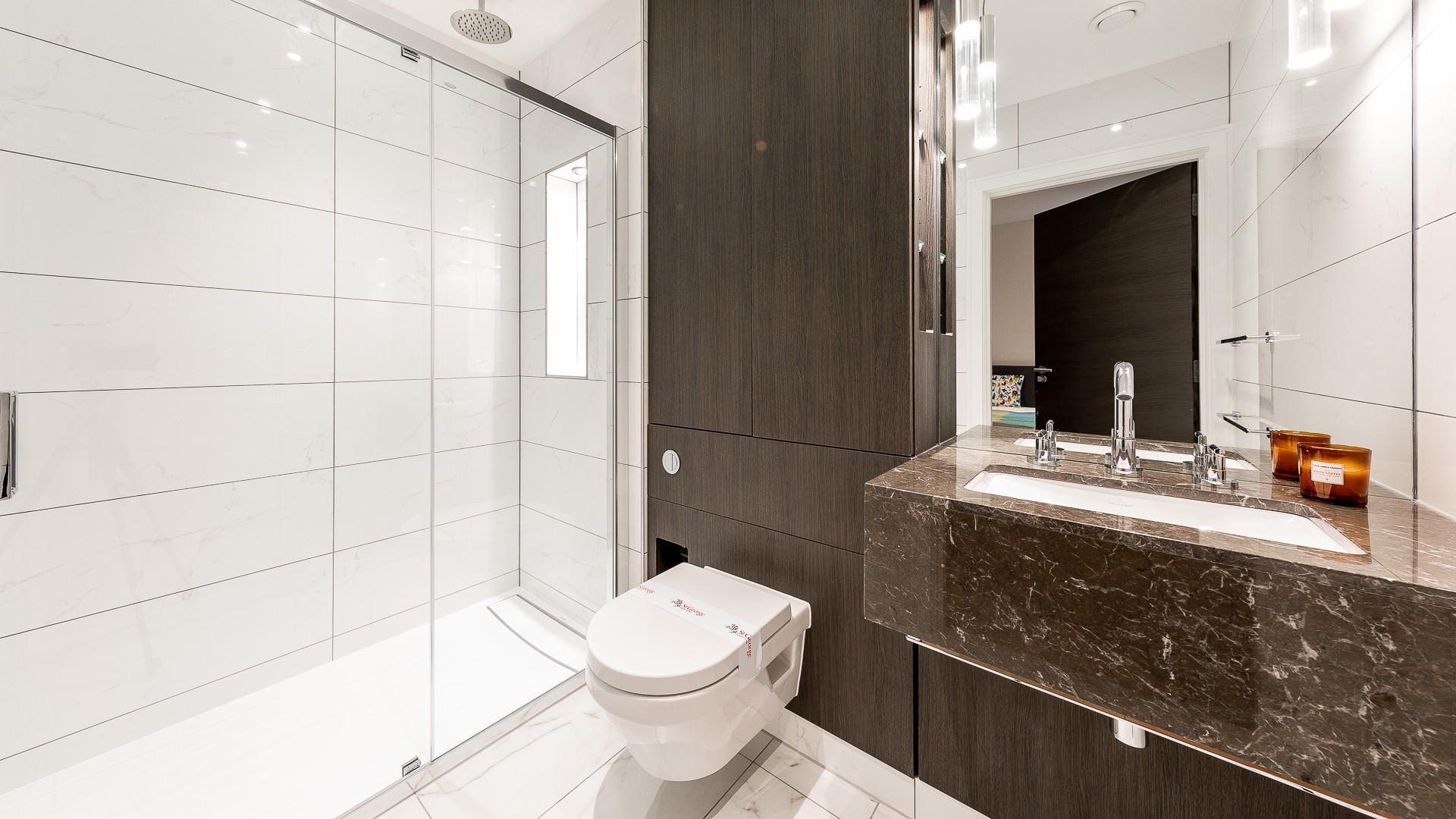 A modern 807 sq ft (74.4 sq m) apartment situated on the 6th floor of Sovereign Court, benefiting from a private balcony and floor-to-ceiling windows.