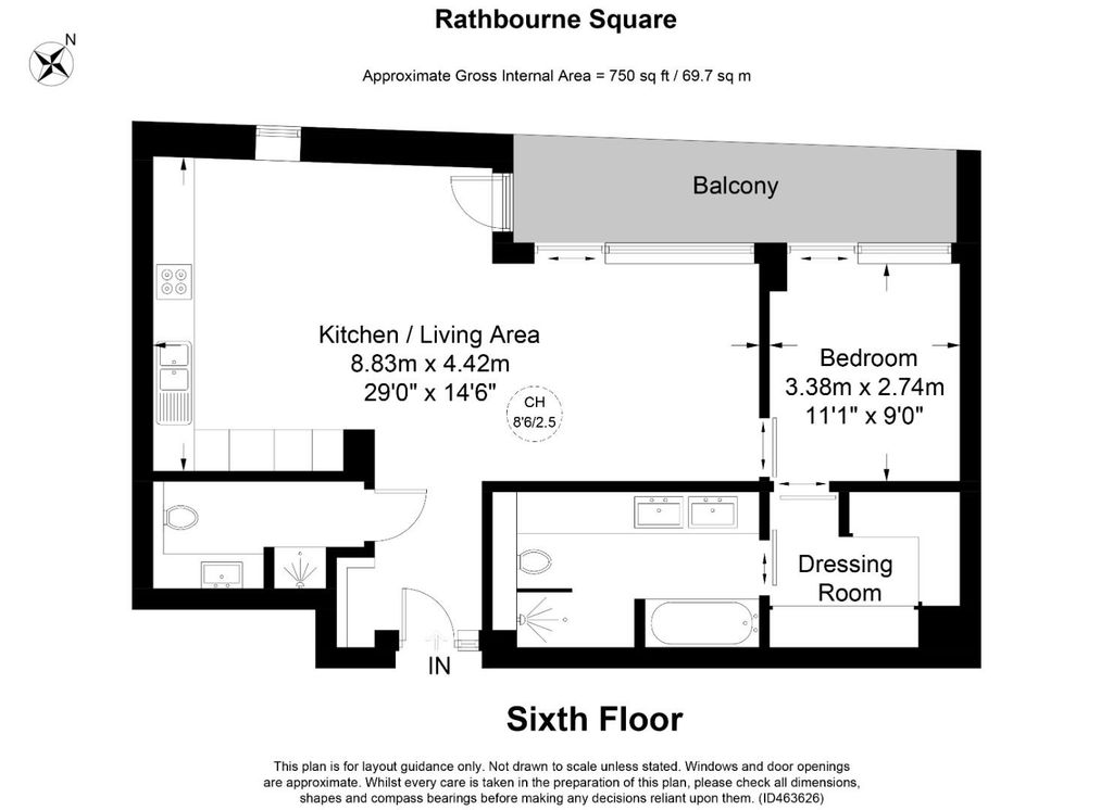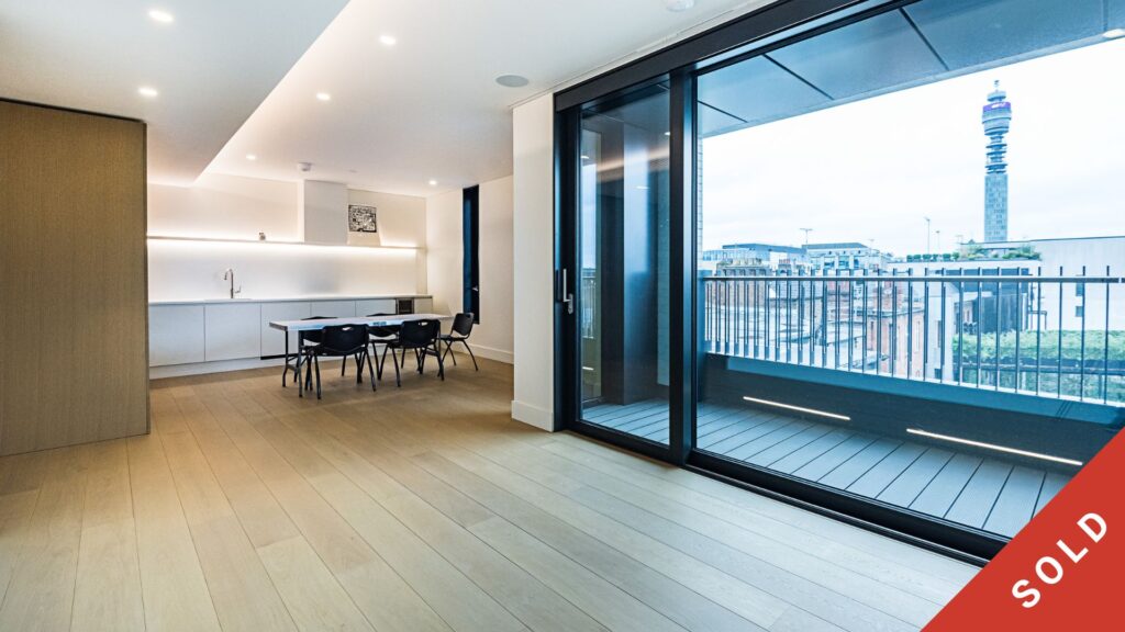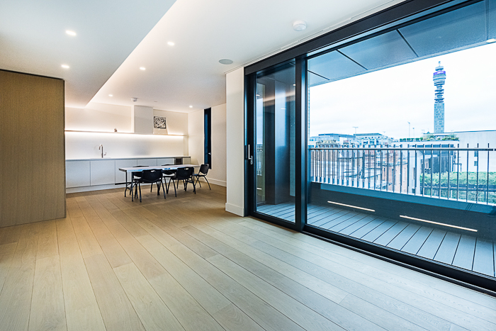 Modern and stylish large one bedroom apartment located in the heart of Fitzrovia. The 750 square feet apartment located on the 6th floor of mixed-use contemporary development Rathbone Square is comprising of a large living and dining area, guest bathrooms, dressing room, spacious en-suite bedroom and a large balcony that offers great views of the inner gardens and iconic BT Tower.