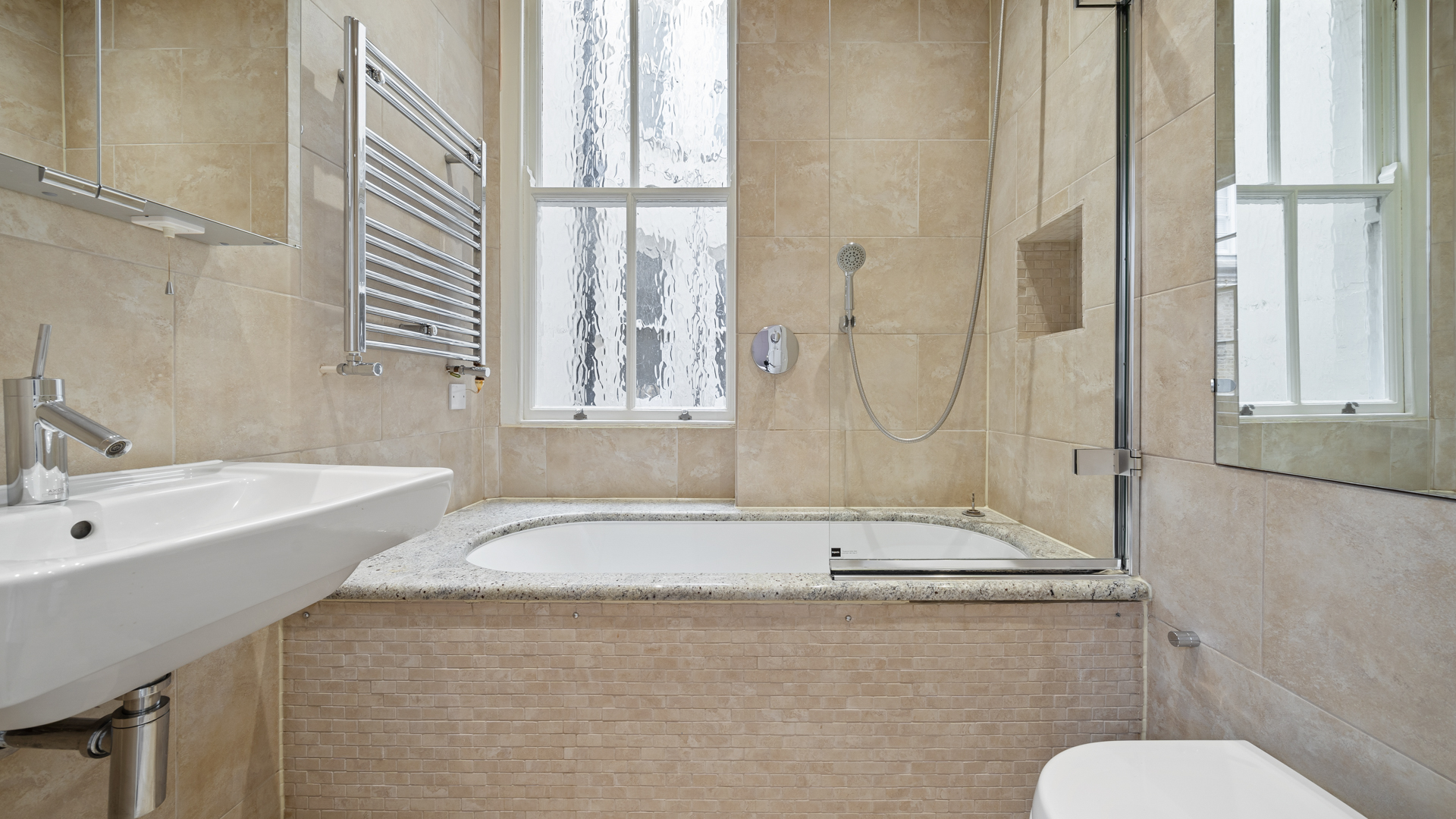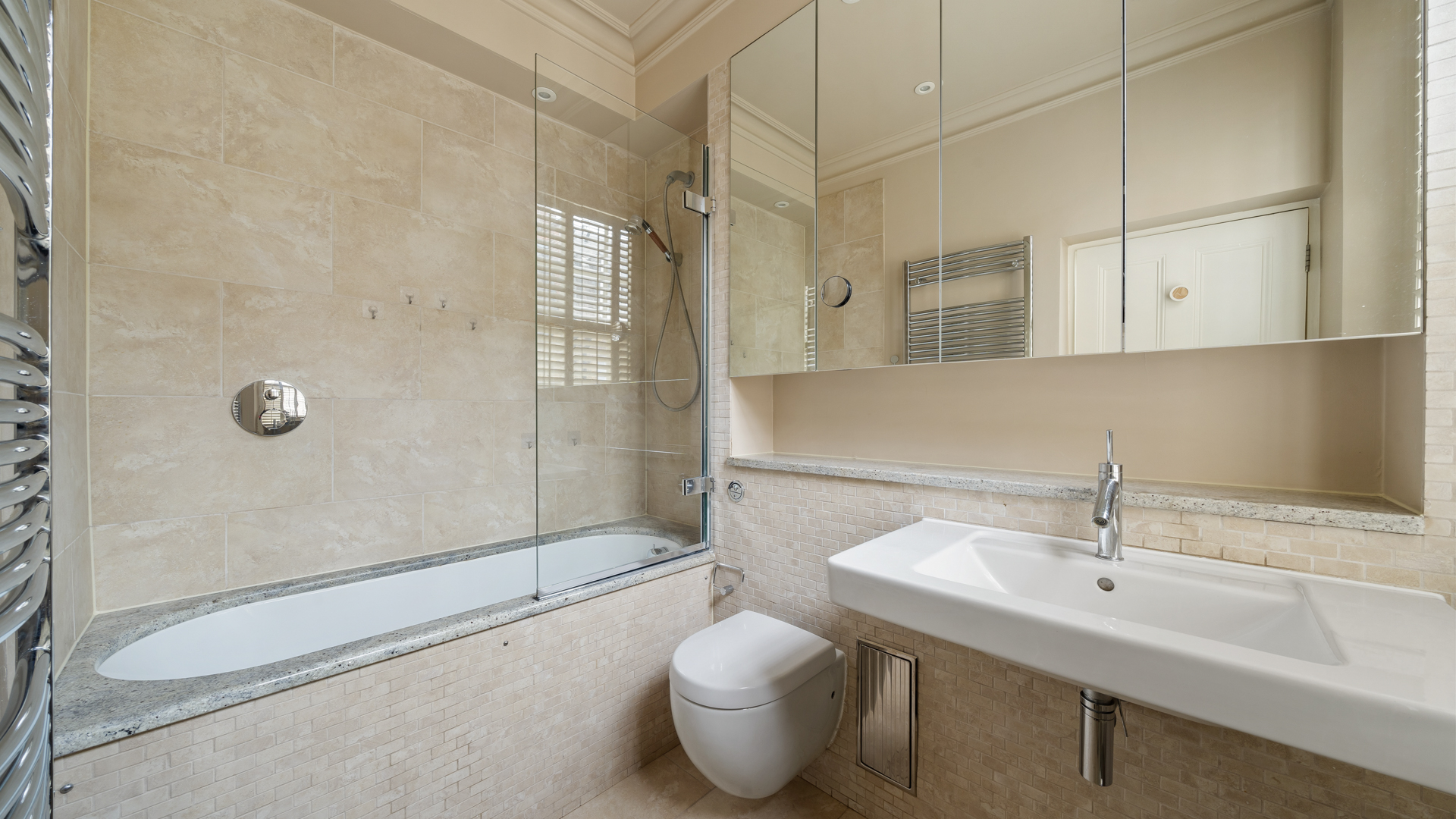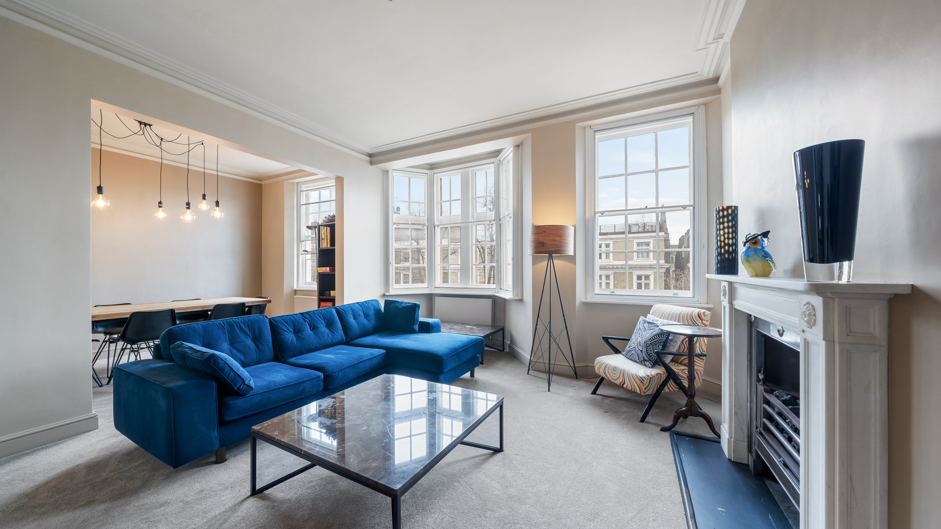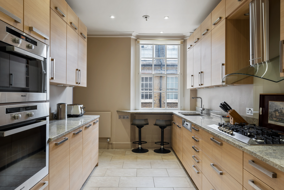 The flat measuring 1490 sqft (138.4 sqm) has a kitchen, a drawing room, spacious dining room, two ensuite bedrooms and one bedroom overlooking Redcliff Gardens with the balcony, and a guest toilet. The kitchen is modernised with built-in furniture and latest appliances. High ceilings (2.9m) and sash windows fill the apartment with air and lots of light.