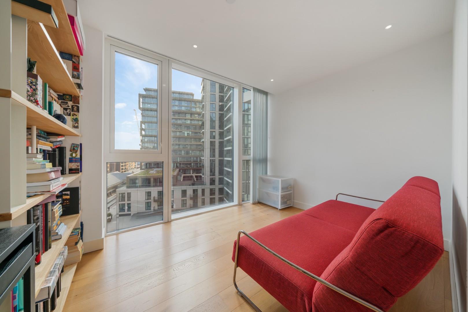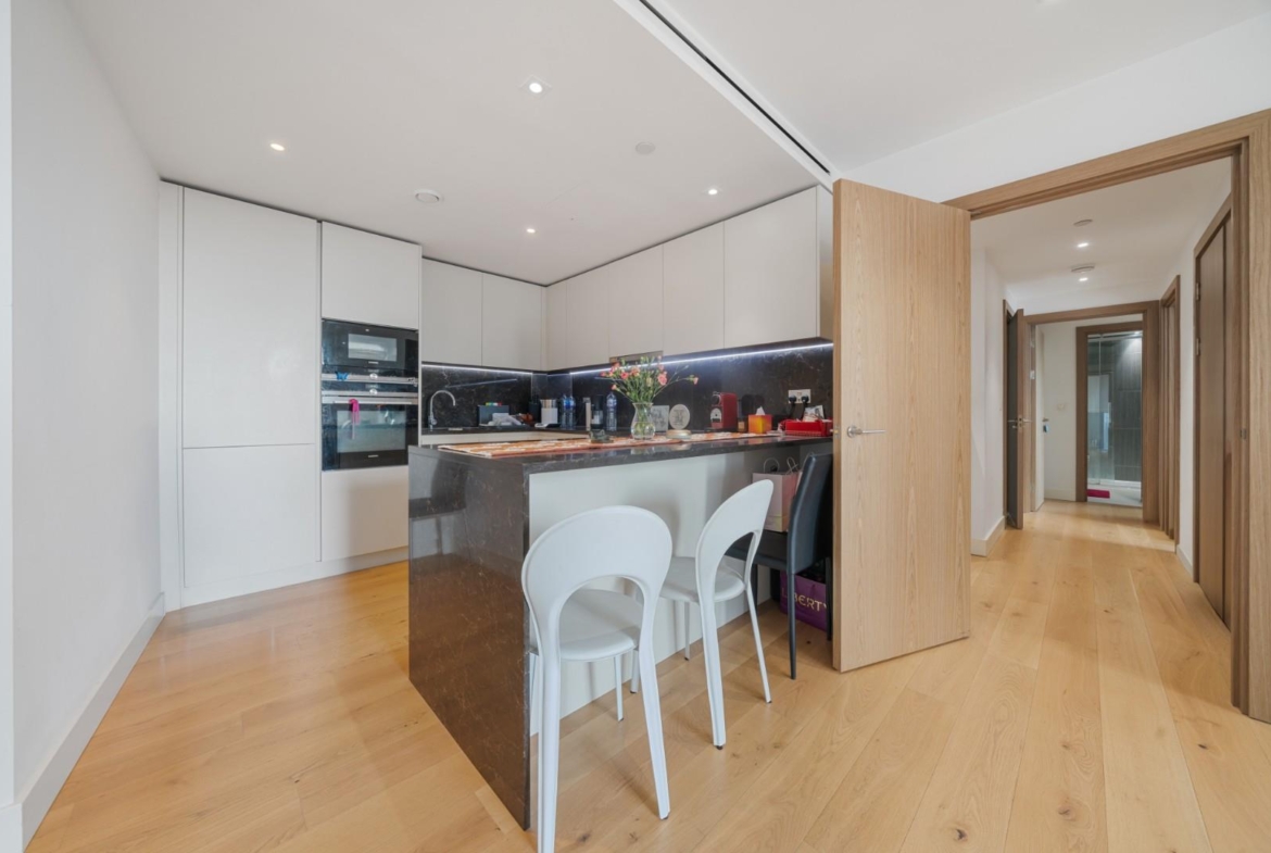 Spacious 2-bed, 2-bath apartment offering floor-to-ceiling windows, 2 balconies, and a fully fitted open plan kitchen. The master suite includes an en-suite bathroom and fitted wardrobes. The flat benefits from ample storage throughout.