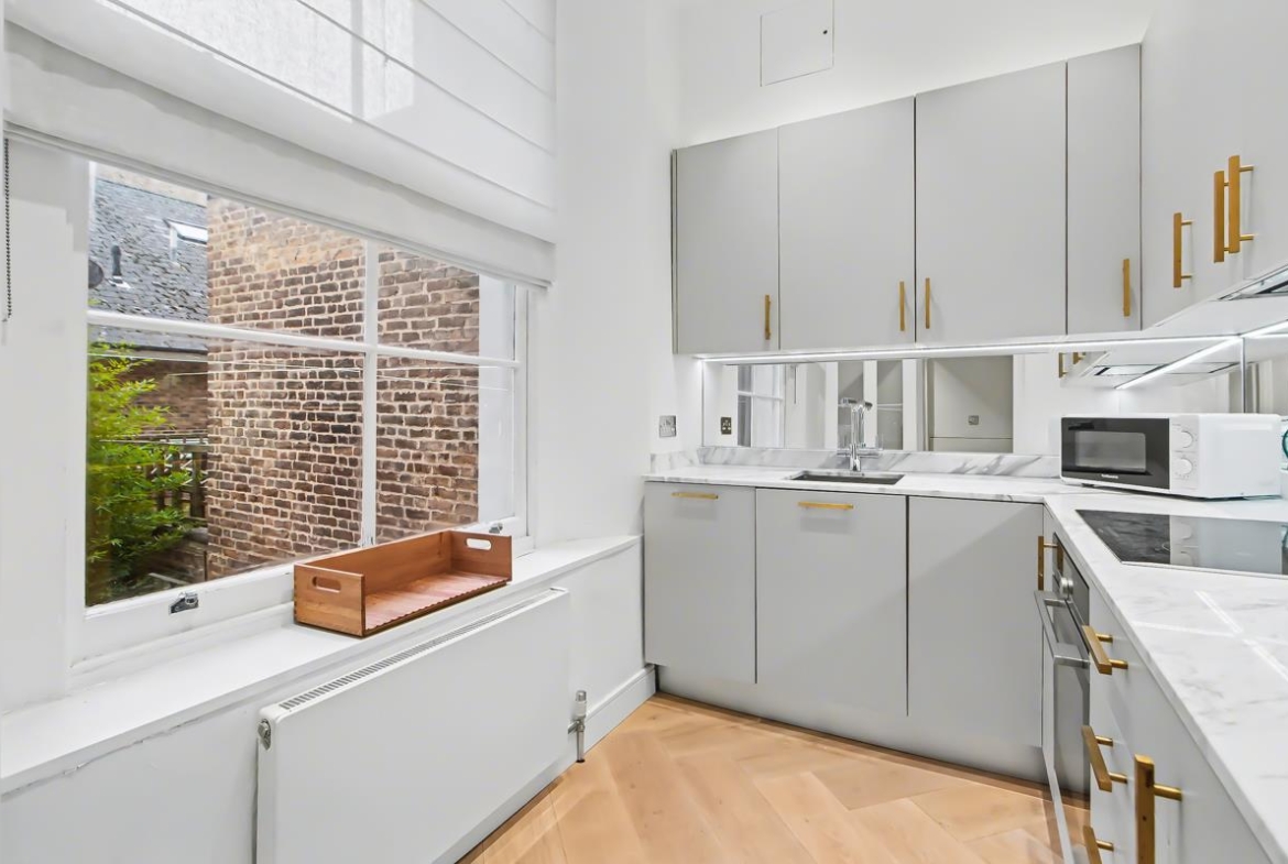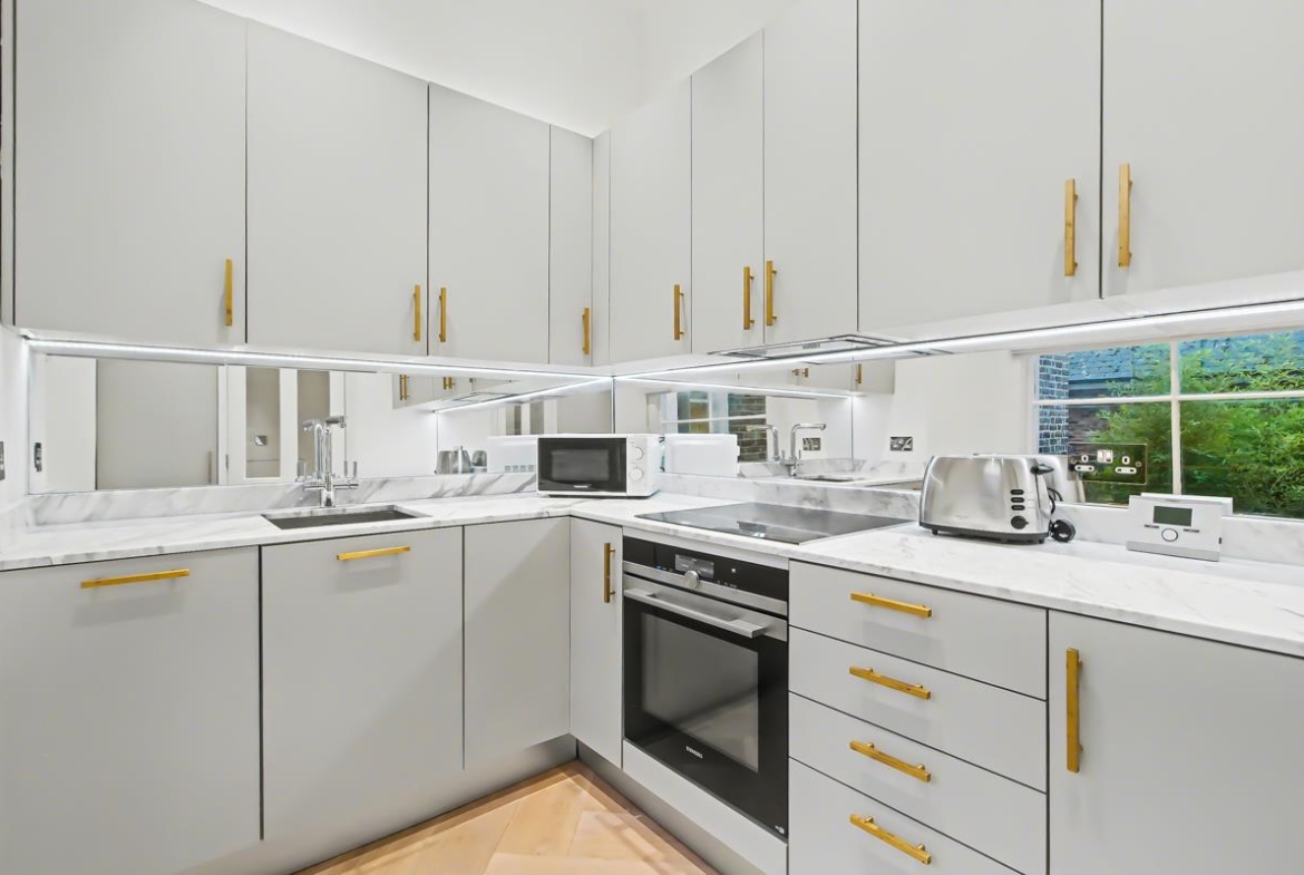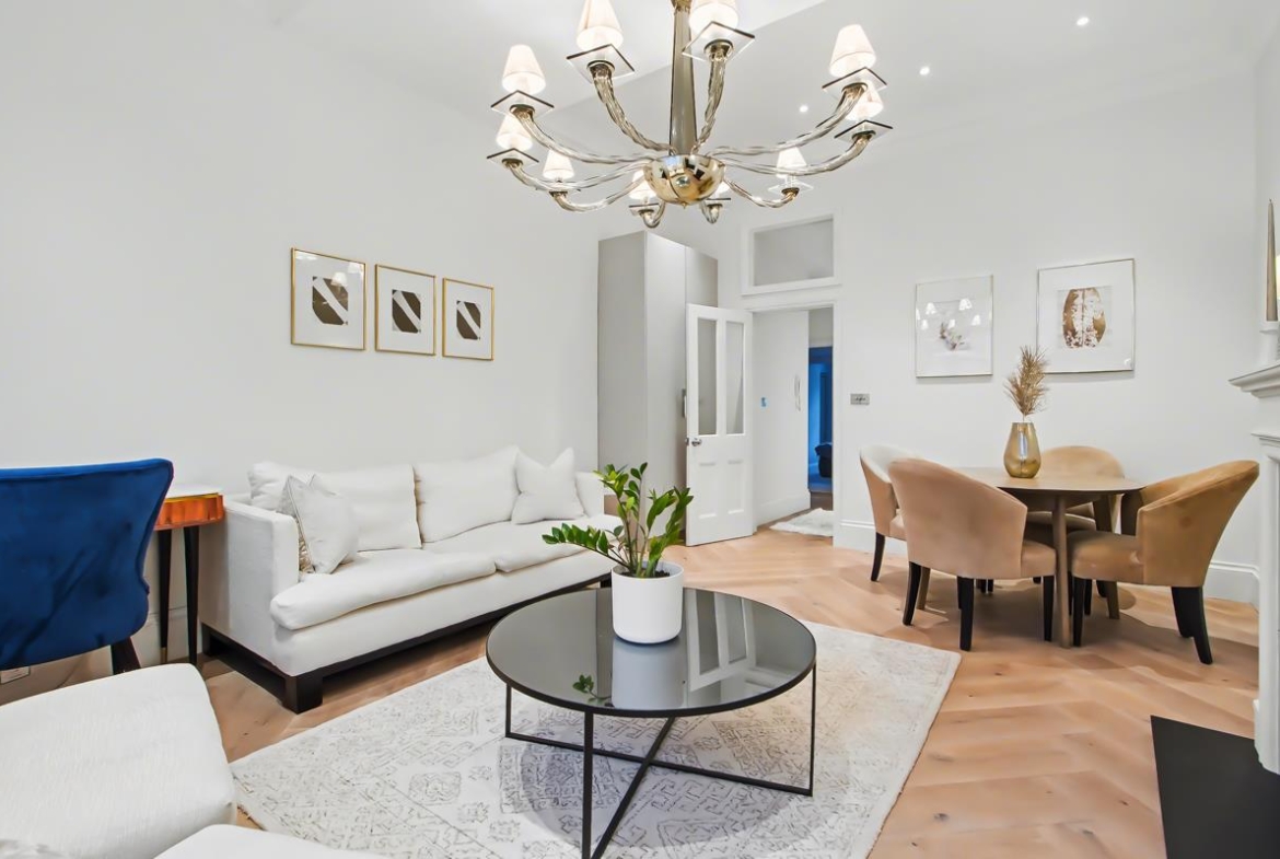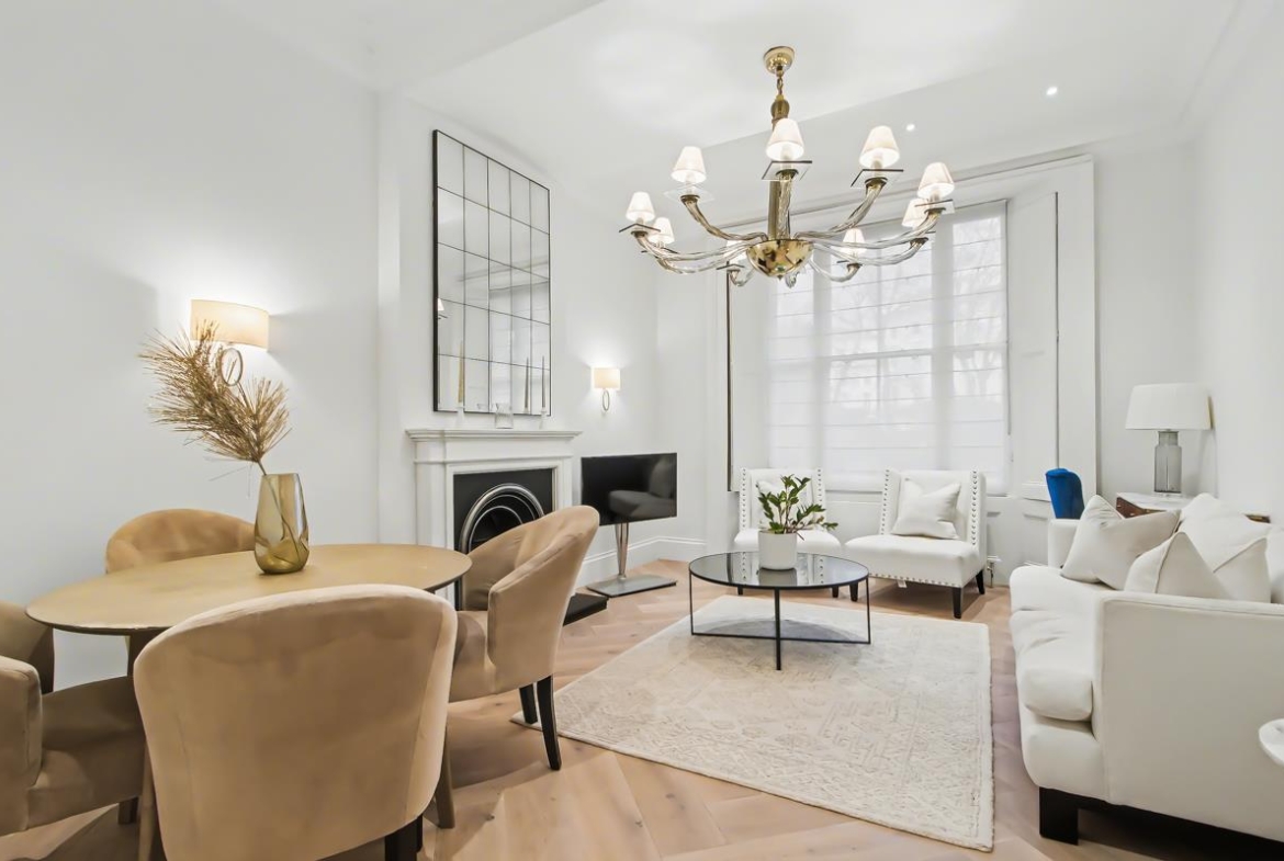 A stunning one-bedroom apartment measuring 553 sq ft (51.4 sq m), positioned on the ground floor of the prestigious Westbourne Gardens.