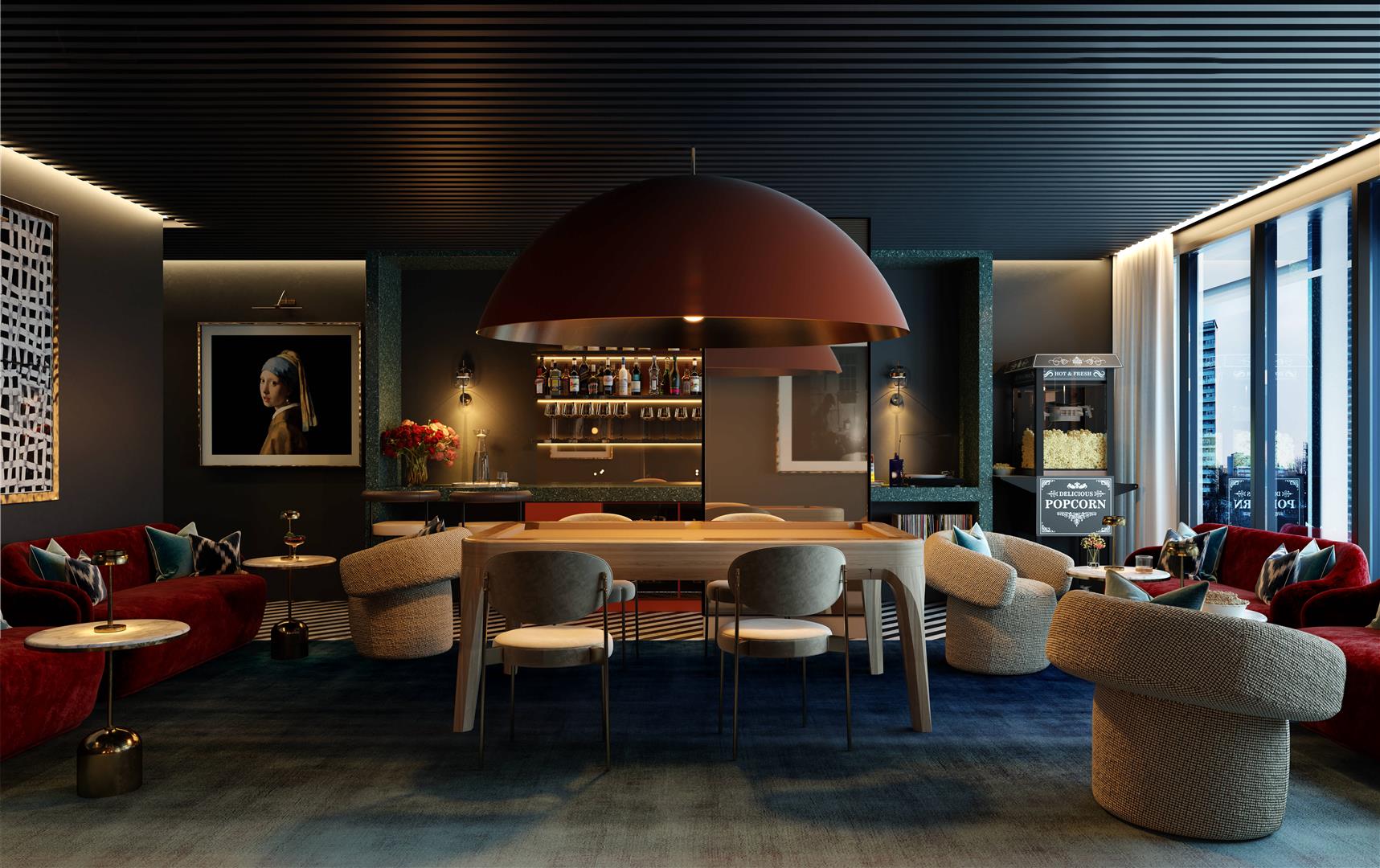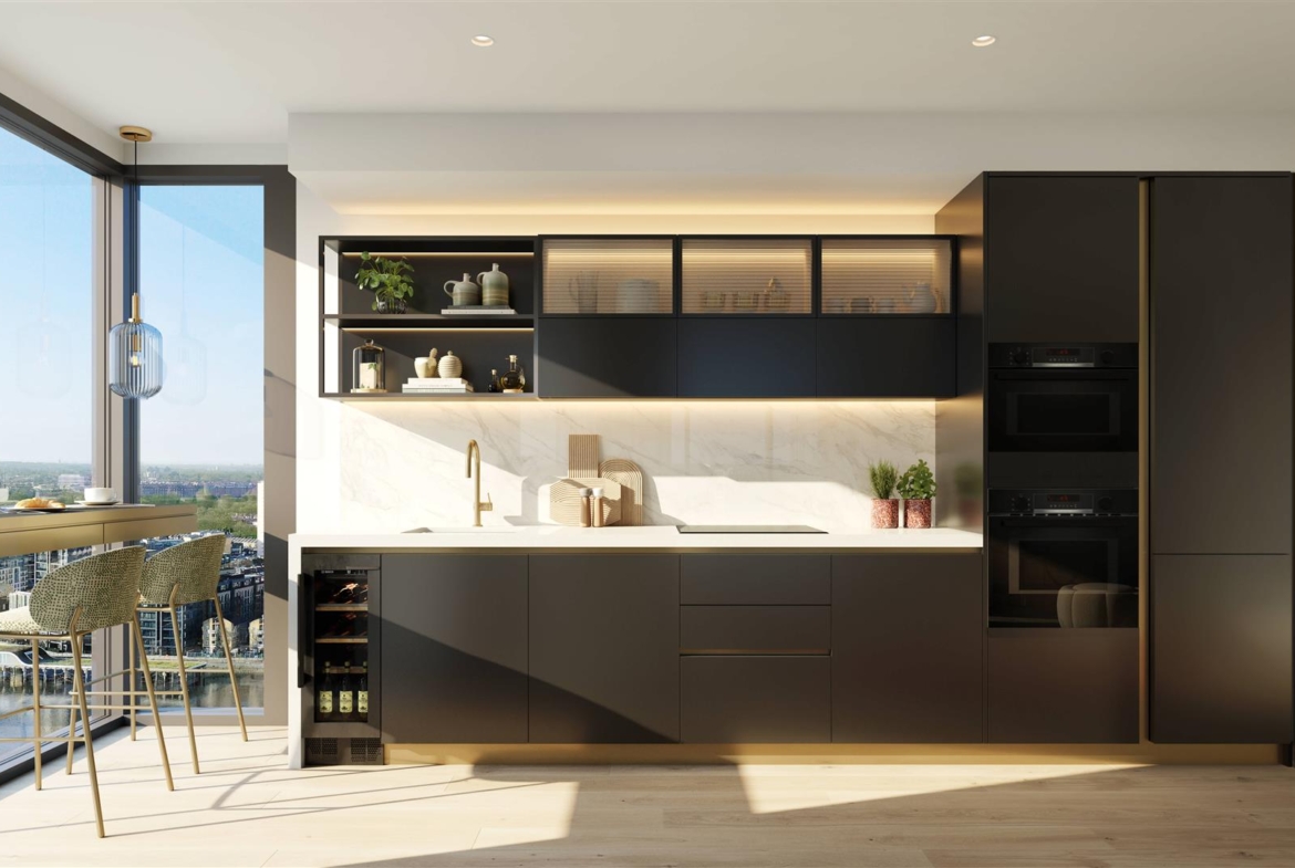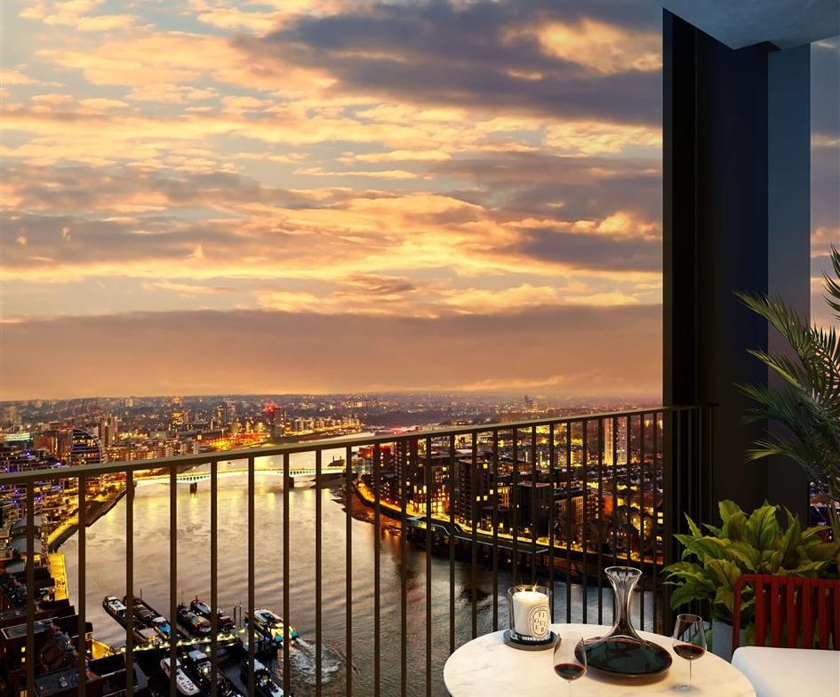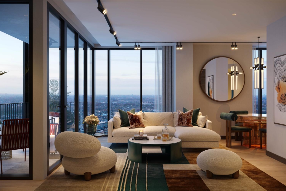 Designed with a focus on wellbeing and sustainability, the building embraces intelligent, future-forward architecture and green design principles. Residents enjoy access to a state-of-the-art fitness and wellness centre, private cinema, co-working lounges, and the crown jewel – a tranquil rooftop retreat with breath taking sunset views over London.