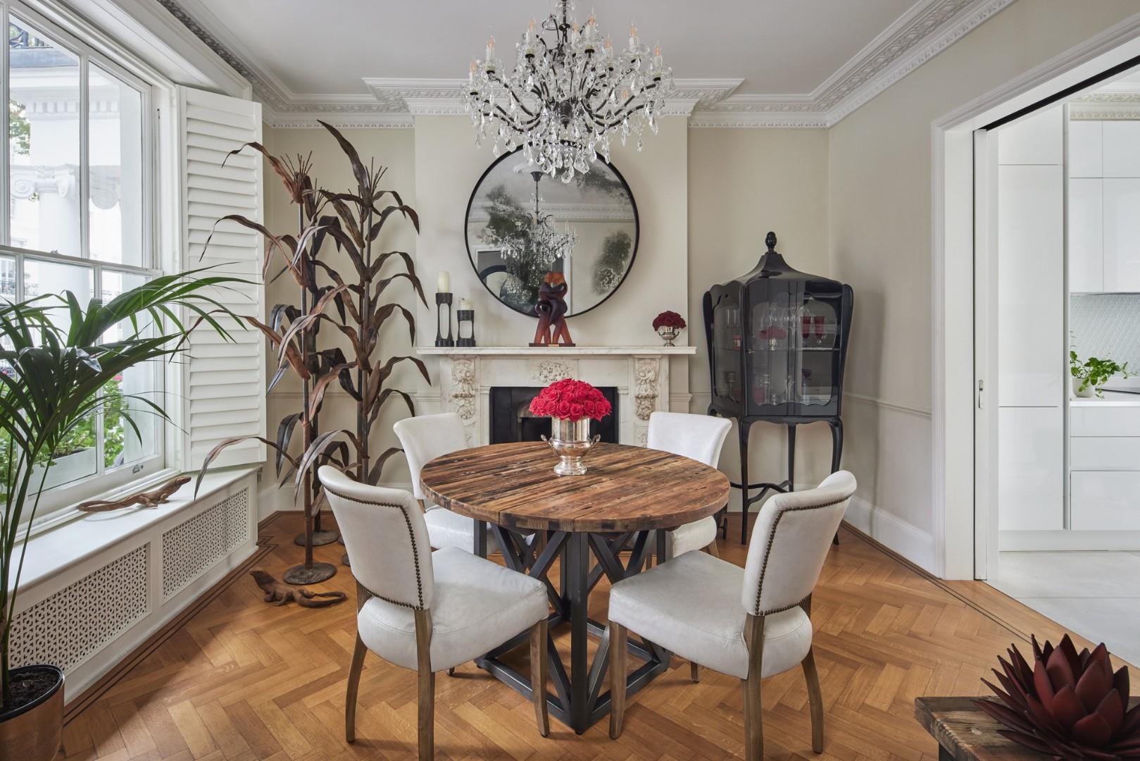 On the ground floor is a well fitted modern kitchen and dining room with stairs down to the south west facing garden. The double reception room on the first floor has two full length French doors opening out to overlook the communal gardens and beautiful fountain of Wellington Square.